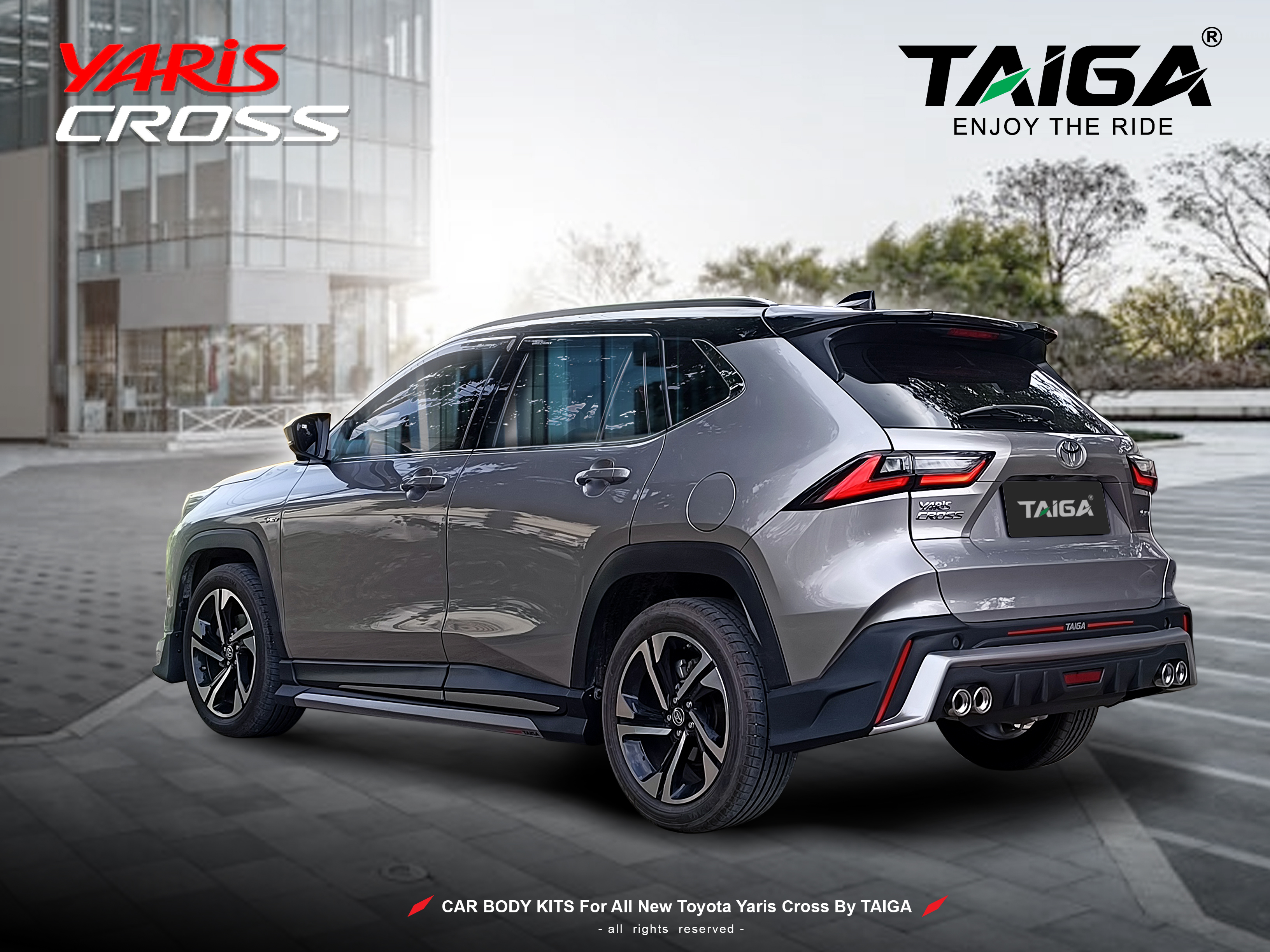 ชุดแต่งค่ายน้องใหม่ Taiga Body Kits (ไทก้า) สำหรับรถโตโยต้า ยารีส ครอส 2023 2025 ใหม่ ด้วยดีไซน์สปอร์ต ตัดสีทูโทน ดูโฉบเฉี่ยวมากยิ่งขึ้น โดดเด่นด้วยดีไซน์ปลายท่อคู่ด้านหลัง พร้อมไฟเบรก LED ผลิตจากวัสดุพลาสติก ABS น้ำหนักเบา เหนียวและให้ตัวได้ดี ทำสีระบบ 2K สวยงาม บริการติดตั้งหรือจัดส่งฟรี